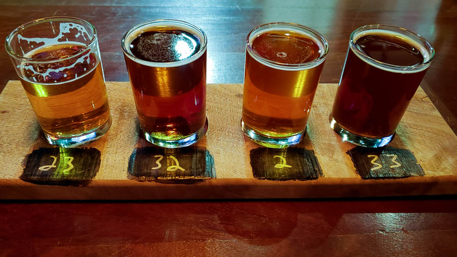 I had a 4-beer sampler from their current line-up: Easy Sipsa, a 4.1% 20 IBU session IPA; Ring of Fire, 5.2%, 41 IBUs, Scottish IPA; Chalk Eater, 7.2%, 55 IBUs, IPA; and The Hammer, 9.75%, 20 IBUs, Scotch ale.