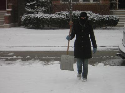 We got about 10 cm (4 in.) of snow last night, so this morning Anne and I went out to shovel.