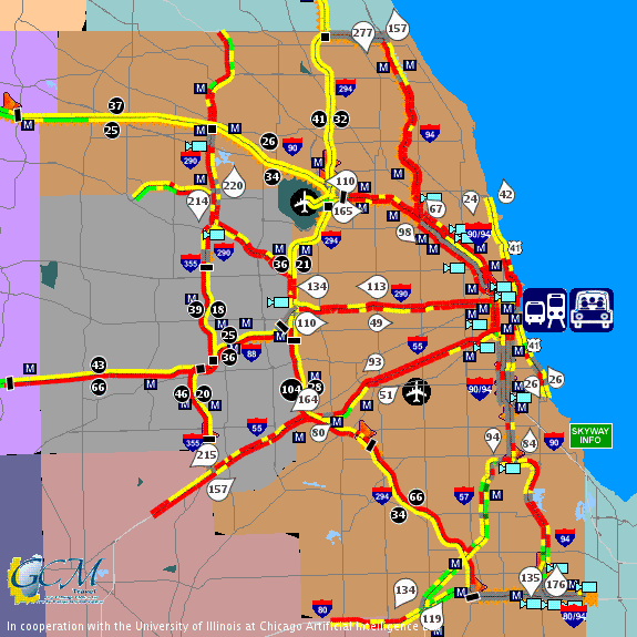 I have never, as far as I can remember, in all my years, seen a traffic report like this. I can't imagine it's accurate, showing as it does five hours from Northbrook to the Loop (a distance of 40 km, 25 mi.):