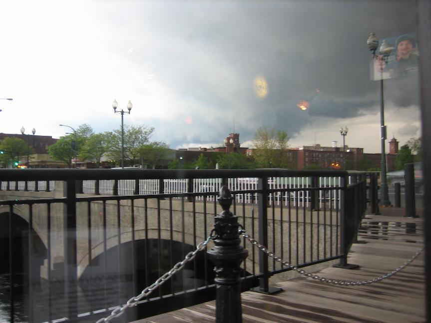 Also, a bonus shot. As I reported earlier, a tornado touched down about 60 km (40 mi.) east of me on Sunday. As I was getting the Nantucket photos off my camera, I discovered I had a photo of the wall cloud that spawned the tornados: