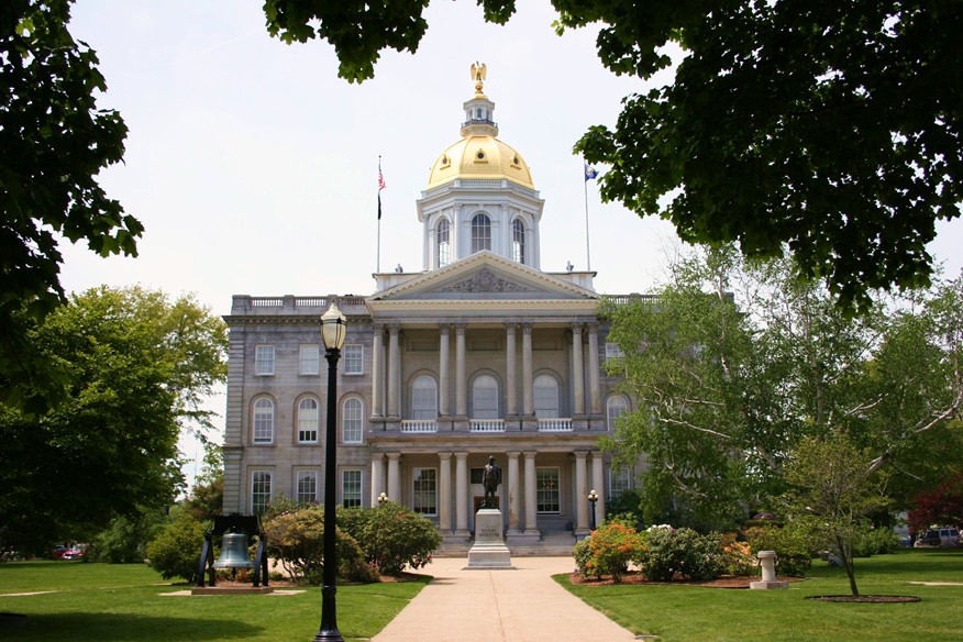 I'm back now. I've got a lot to catch up on, not least of which is a two-week pile of stuff in my office. I also have a collection of photos to go through from the last three weeks or so, like this one of the New Hampshire State Capitol: