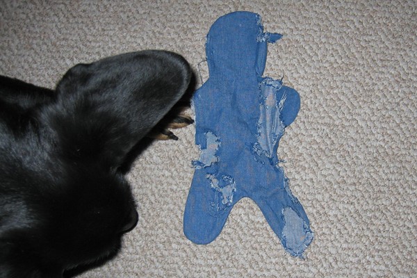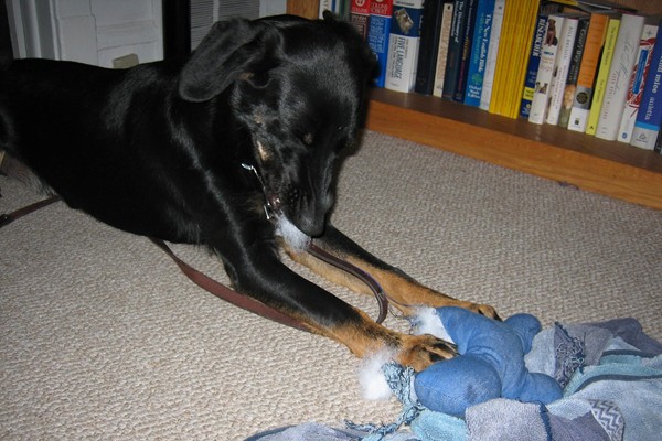 My friend Sean visited over the weekend and brought with him a stuffed toy his wife made for Parker. The results were predictable, though Parker dispatched this one much faster than the vet toy he got for his birthday: