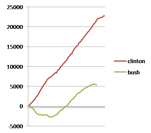 Krugman points out on his blog today that, in numbers of new jobs, Clinton's worst year was better than Bush's best.