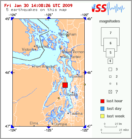 The US Geological Survey just reported a 4.5-magnitude earthquake in downtown Seattle, where the time is about 6:15 am. That'll wake you up. No damage or injuries reported yet—it was a minor earthquake—but still, what a way to start the day.