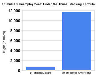[W]hat we've done here is do an apples to apples comparison of current unemployment numbers to the stimulus spending number using the Thune Stacking Formula as a basis of comparison. Here we have dollars stacked on top of each other versus current number of unemployed Americans stacked on top of each other.