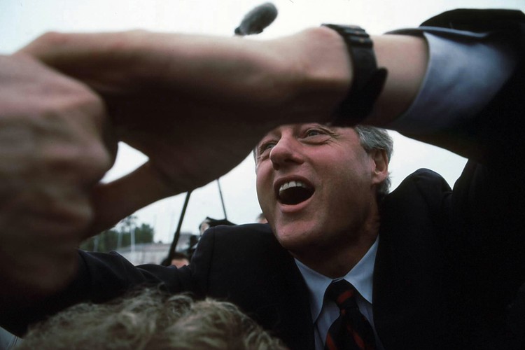 I think you can see the Secret Service agent pushing me away in this shot, though Clinton himself couldn't get enough of the rope line: