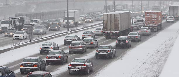 At the peak of the morning rush hour, travel times on some expressways were well over an hour above the norm. Travel conditions are expected to be worse this evening as winds pick up and snow begins to drift across roadways.