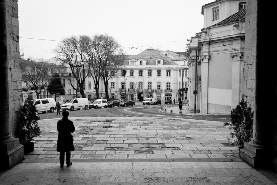 Looking out from the entrance to the Sé, Lisbon, Portugal: