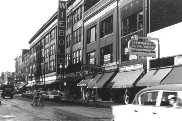 The Weiboldt's is long gone, but the building remains. Not so the three buildings to its southeast, which got taken down in the 1980s, shortly after my grandmother sold the store.