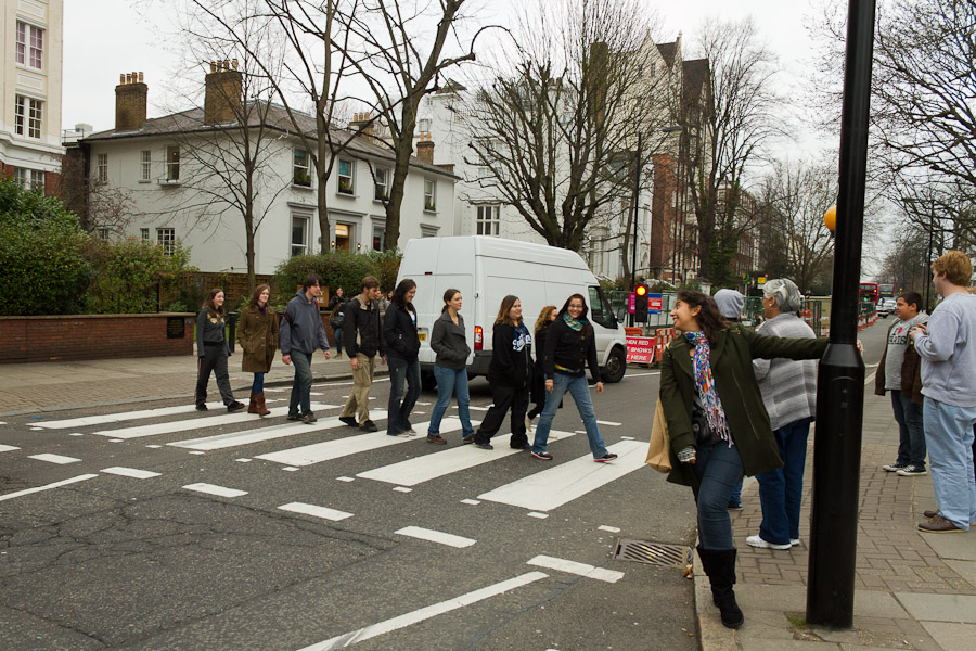 Yes, that's Abbey Road, and those are a bunch of tourists blocking traffic. In the 30 minutes I hung out there, no fewer than 10 groups posed on the zebra crossing. (I confess, I took photos for two of them.)
