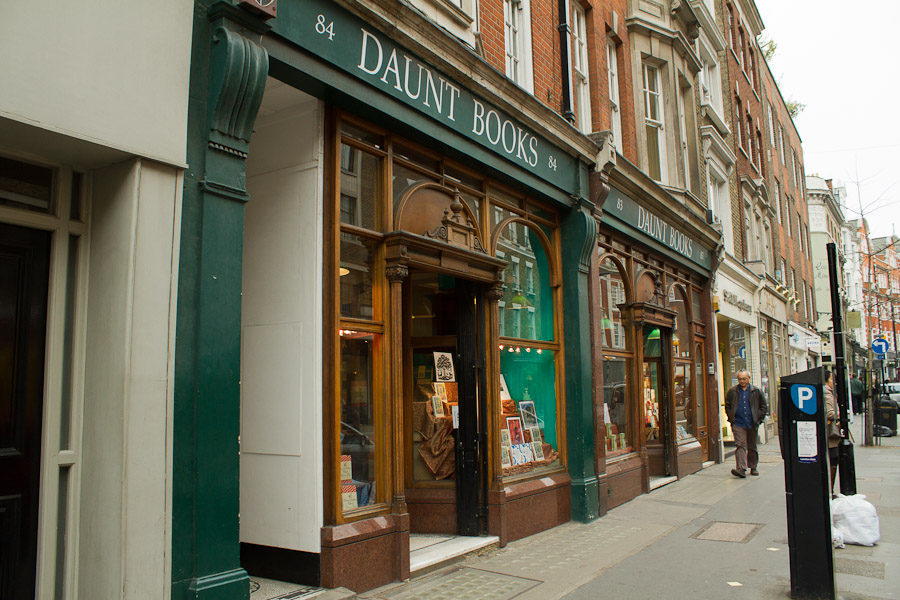 This afternoon I traipsed around Marylebone, which is just north of Hyde Park. My seat-mate recommended two places specifically, so I went to them. First, Daunt Books, on Marylebone High Street: