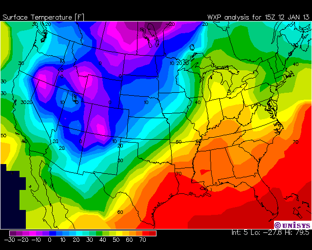 It's 12°C in Chicago right now, a temperature perfectly normal for April 1st, and 12.2°C above normal for January 13th.