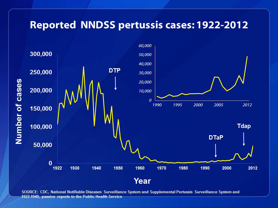 It would be an understatement to say that pertussis and other formerly conquered childhood diseases like measles and mumps are making a resurgence. Pertussis, specifically, has come roaring back. From 2011 to 2012, reported pertussis incidences rose more than threefold in 21 states. (And that’s just reported cases. Since we’re not primed to be on the look-out for it, many people may simply not realize they have it.) In 2012, the CDC said that the number of pertussis cases was higher than at any point in 50 years. That year, Washington state declared an epidemic; this year, Texas did, too. Washington, D.C. has also seen a dramatic increase. This fall, Cincinnati reported a 283 percent increase in pertussis. It’s even gotten to the point that pertussis has become a minor celebrity cause: NASCAR hero Jeff Gordon and Sarah Michelle Gellar are now encouraging people to get vaccinated.