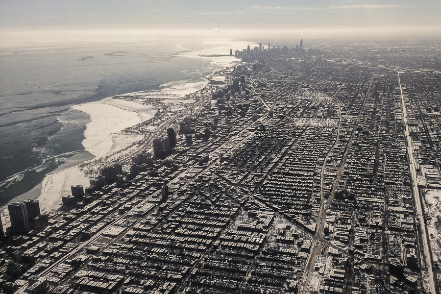 The Great Lakes have more ice cover than at any point in the last 20 years. Here's the view on the flight in last Monday morning: