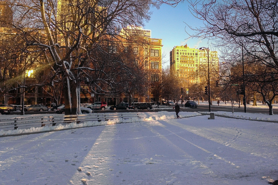 Even though we have snow on the ground once again, the sun came out this morning, so my bus stop didn't look as grim as it did yesterday: