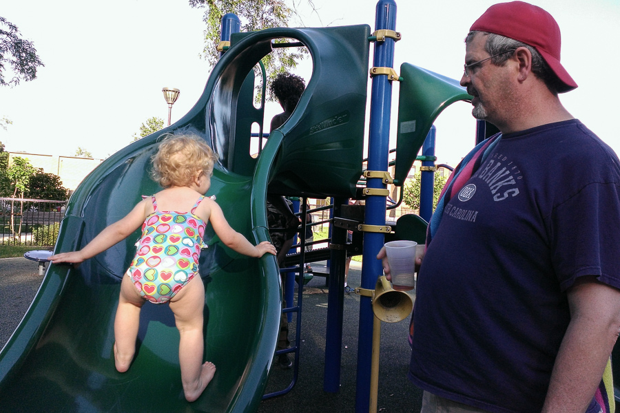 Nothing of political or social import this morning. Just a photo from yesterday, of my friend's 20-month-old daughter climbing up a slide. I watched this kid go up and down this slide structure like she owned it. I'm no developmental psychologist, but it sure seemed to me she was way ahead of where a 20-month-old would ordinarily be in spatial reasoning and motor control.