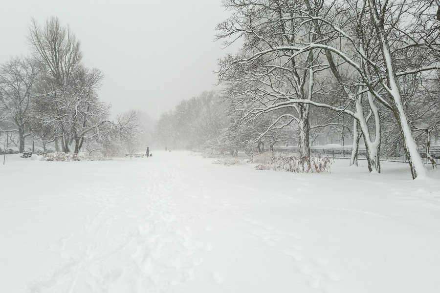 A slow-moving winter storm has moved into the Chicago area. Compared with the truly awful storms we've had over the years, it doesn't seem so bad, so far: only 150 mm so far with another 150 mm predicted through tomorrow morning. This comes, of course, with falling temperatures and increasing winds as the low passes to our south, but again, nothing we can't handle.