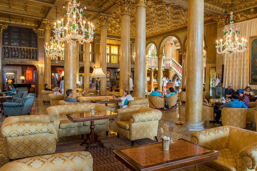 I took 324 photos on Monday, so I'm not all the way through them yet. I'll just start with a photo of our hotel's lobby. We stayed at the Hotel Danieli, a 193-year-old hotel in a 600-year-old building: