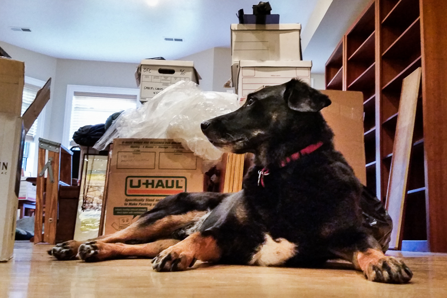 I took Parker's annual birthday photo yesterday, but I only now had the chance to post it. Surrounding him, and distracting him, is the detritus of my life, which I have not (surprise!) unpacked yet:
